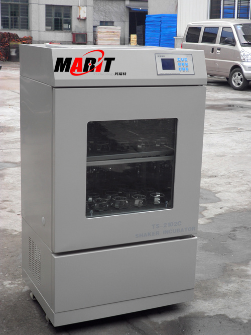 双层小容量空气浴摇床TS-2102C(制冷型)一、产品简介 双层空气浴恒温摇床(又名双层恒温震荡器)广泛应用于对温度、振荡频率有着较高要求的细菌培养、发酵、杂交和生物化学反应以及酶、细胞组织研究等。在医学、生物学、分子学、制药、食品、环保等研究应用领域有着广泛而重要的应用。 双层小容量空气浴摇床 1.内胆采用304不锈钢制作,永不生锈 2.转速稳定,控温效果好;大量出口欧洲国家 3.液晶一屏显示,温度、转速、时间等参数 4.诚信企业制造,产品耐用,参数无保留呈现。 5.售后有保障,全国各地有售后服务 二、产品特点双层结构设计,节约空间占地小,功能多投资少。 倾斜式人性化的控制面板,大屏幕背光液晶显示屏,更具良好的视觉效果。 个性化程序设计,可预设长达十段的可编程序,实现对温度、转速和时间的预约定时运行 大视角观察窗整个工作状态清晰了然。 整机静音设计,静电喷塑箱体,造型豪华美观。 内置照明系统及紫外杀菌系统。 高性能的恒温功能,避免样品的蒸发干枯。 交流感应长寿命电机设计,宽调速、恒力矩、恒转速、无碳刷、免保养。 镜面不锈钢内衬,不锈钢电抛光托盘、弹簧、烧瓶夹。仪器永无锈蚀之虞。 灵活便捷,托盘,夹具,可以拆卸。 三、控制系统介绍采用具有超温偏差保护、超速保护、液晶显示的微电脑P.I.D温度控制器,带有定时功能, 控制转速的线路确保摇床缓缓启动、平稳加速,保证实验样品的安全、控速精准可靠。 升级版声光报警环境扫描微电脑芯片,具有更强大的数据处理功能 超温报警、超速报警、定时停机、来电恢复、参数加密、温度修正、转速修正等功能 具有门控功能,当设备的门被打开时停止运行,关门后恢复运行。 具有断电恢复功能,在外电源突然失电又重新来电后,设备可自动按原设定程序恢复运行 四、安全防护考虑极致的安全保护设计,实现对人员、样品和设备的三重安全保护 安全功能:传感器故障报警、超温报警、独立式过升防止器、独立式超温保护器、过电流跳闸保护等 五、规格参数